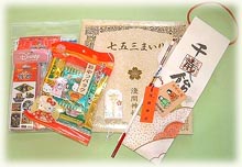 11月15日に、3才の男女児、5才の男児、7才の女児が晴れ着を着て、親子そろって神社にお参りし、子供の成長を神さまに感謝し、これからの無事を祈ります。七五三は、この年頃の子供の年祝いをする古くからの風習に由来するもので、代表的なものは、3才の「髪置」、5才の「袴着」、7才の「帯解」の祝いです。「髪置」は男女児ともに行われた儀式で、この日を境に髪を伸ばし始めました。また男児は「袴着」で袴を着け始め、女児は「帯解」でそれまで付け紐で着ていた着物から帯でしめる着物にかえました。つまり形式的にではありますが、七五三を終えて、晴れて一人前として扱われるようになったのです。七五三参りは、昔は数え年で行いましたが、今では満年齢で行うところが多くなりました。