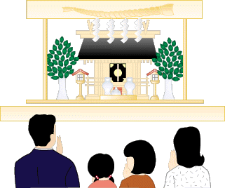お父さん、あるいはお母さんが毎朝、家族を代表して神棚まつりと祖先まつりを行い、家族が今日一日、無事に過ごせますようにとお参りします。
